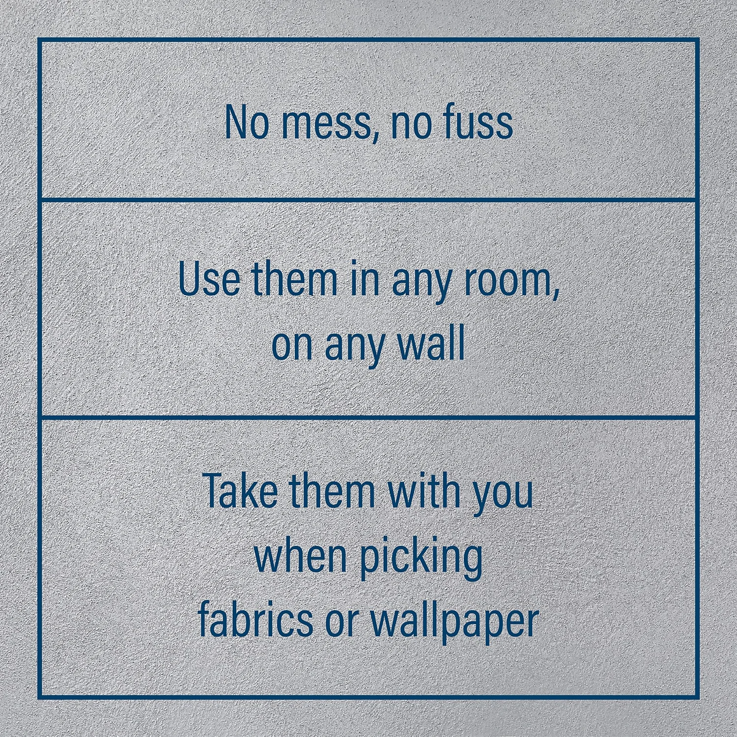 Create mood boards instantly and easily match with other walls, furniture, fixtures and fittings. Versatile and compact, these real paint testers can also be taken with you when you are out and about, shopping or picking fabrics and accessories for your home.