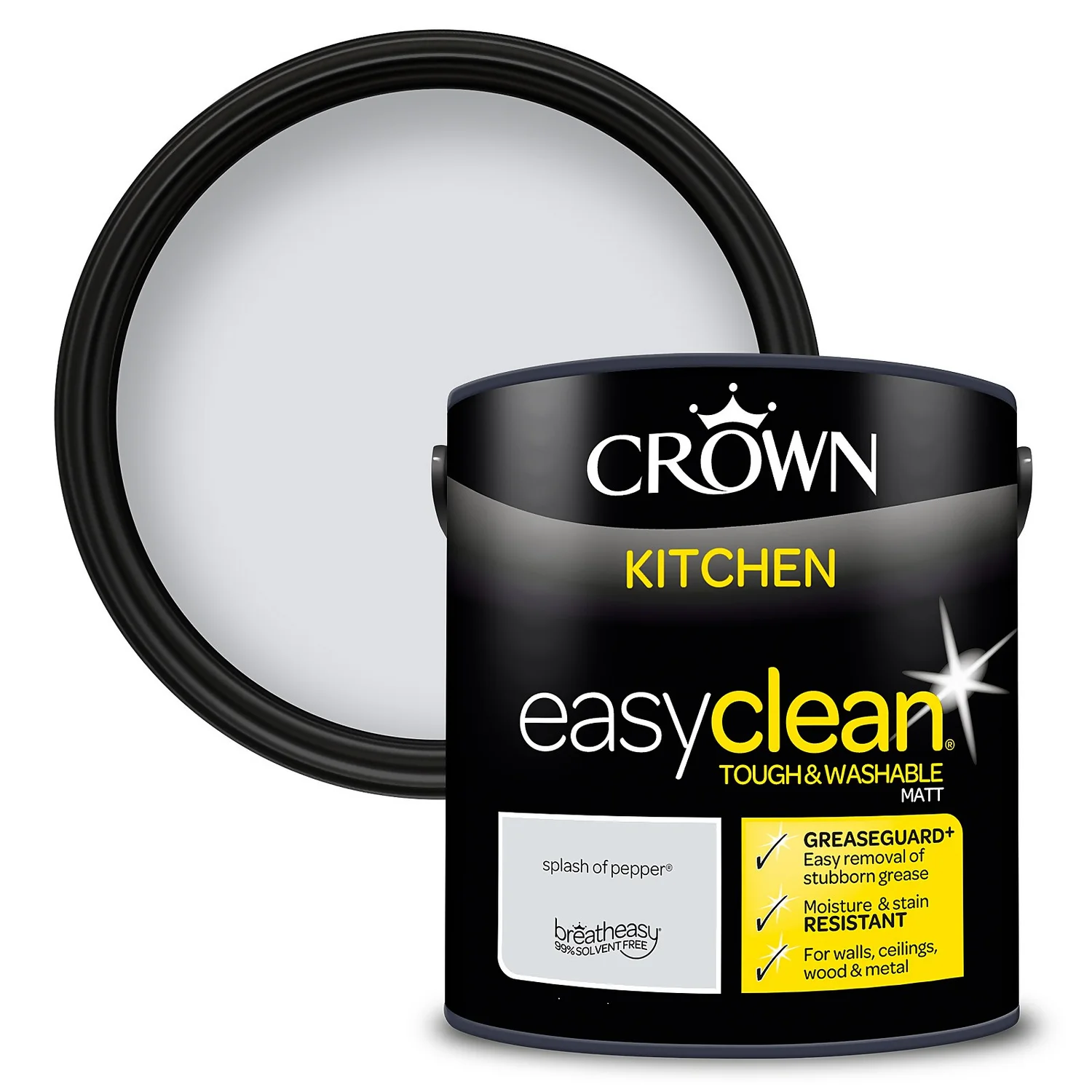 A leading kitchen wall and ceiling paint, Easyclean® Kitchen Matt Emulsion can also be used on suitably primed kitchen wood and metals. Easyclean® Kitchen now includes Crown’s leading breatheasy® formulation, making this 99% solvent free paint the ideal choice for your home. 60 Mumsnet users tried easyclean® multi surface interior paint. 98% would recommend! Splash of pepper® – A Light, Pale Blue Grey Paint. One of 17 colours available in this size, Splash of pepper® is a unique shade of light blue grey paint that provides the perfect finish.