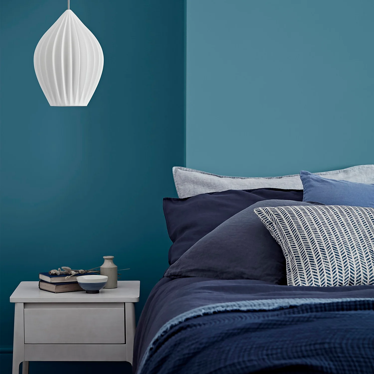 Teal – A Marvellously Rich True Teal Paint. One of 33 colours available in this size, teal is a unique shade of true teal paint that provides a striking presence to any room setting. Create an eye-catching, inviting look to any space, and to any room, with this beautiful true teal paint. “A marvellously rich and highly pigmented colour. A very inviting shade, especially when it’s used on all walls of a room. Alternatively, pair with a warm neutral such as Crown’s dash of nutmeg®.”