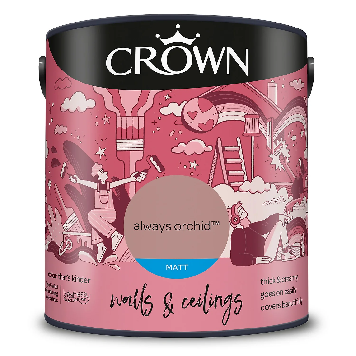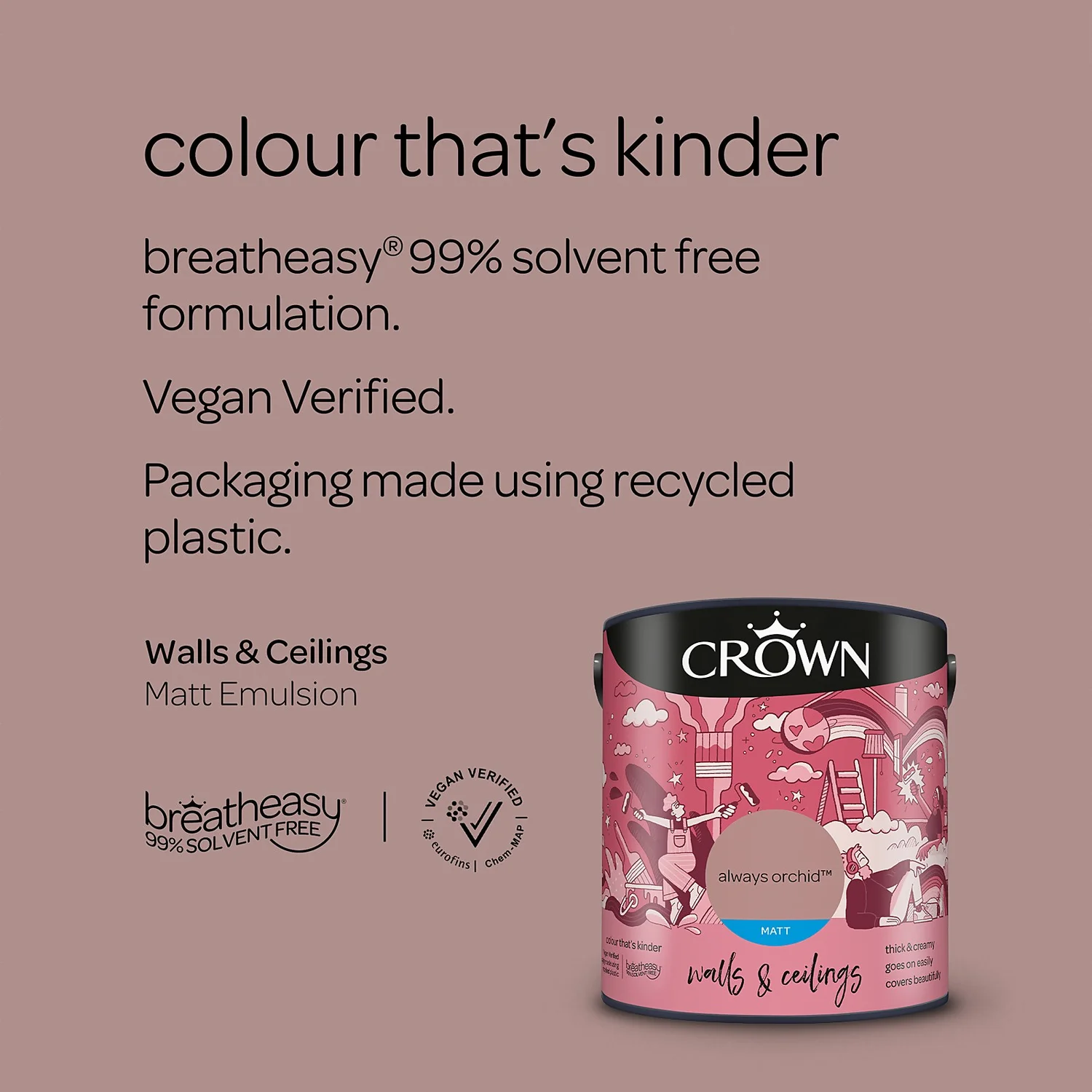 Introducing breatheasy® – Crown’s Leading Formulation. Using carefully selected vegan verified ingredients, Crown’s unique breatheasy® 99% solvent free formulation offers you the confidence to decorate your home safely. Limiting exposure to airborne triggers of asthma and allergy, it helps create a healthier space for your whole family. And we are pushing what’s possible even further with packaging made using recycled plastic.