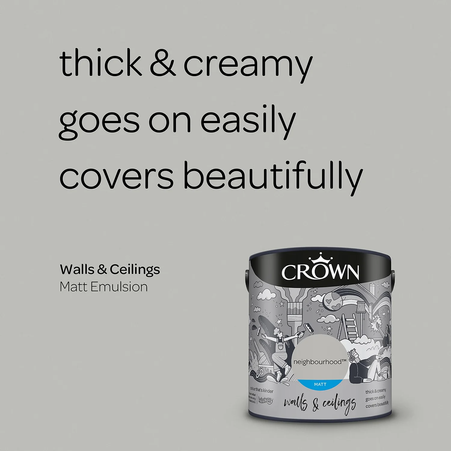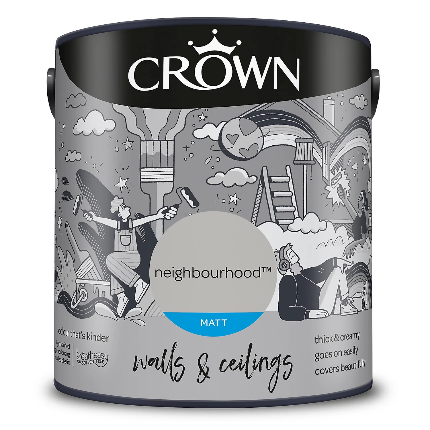 Neighbourhood – A quiet, reserved stone based Greys. One of 80 colours available in this size, Neighbourhood is a unique shade of Greys paint that provides a comforting feel to any room setting. Add a touch of warmth to any space, and to any room, with this beautiful Greys paint. “A stone based Greys, neighbourhood is a quiet and reserved on the walls and works well in both new and traditional properties”- Crown Colour Specialist.