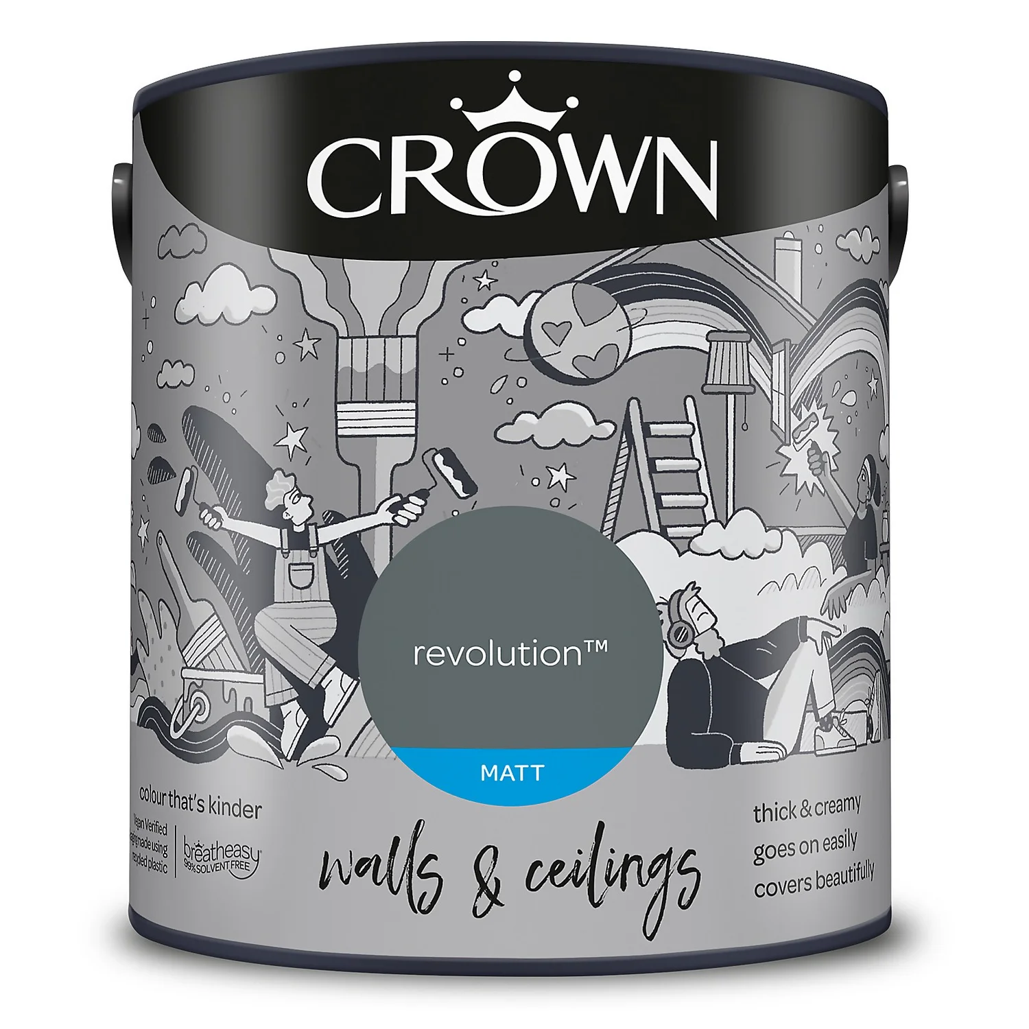 Revolution – A low intensity blue based Greys with a hint of Greens. One of 80 colours available in this size, Revolution is a unique shade of Greys paint that provides a comforting feel to any room setting. Add a touch of warmth to any space, and to any room, with this beautiful Greys paint. “Revolution is a grounding, low intensity colour, it’s a blue based Greys with a hint of Greens.”- Crown Colour Specialist.