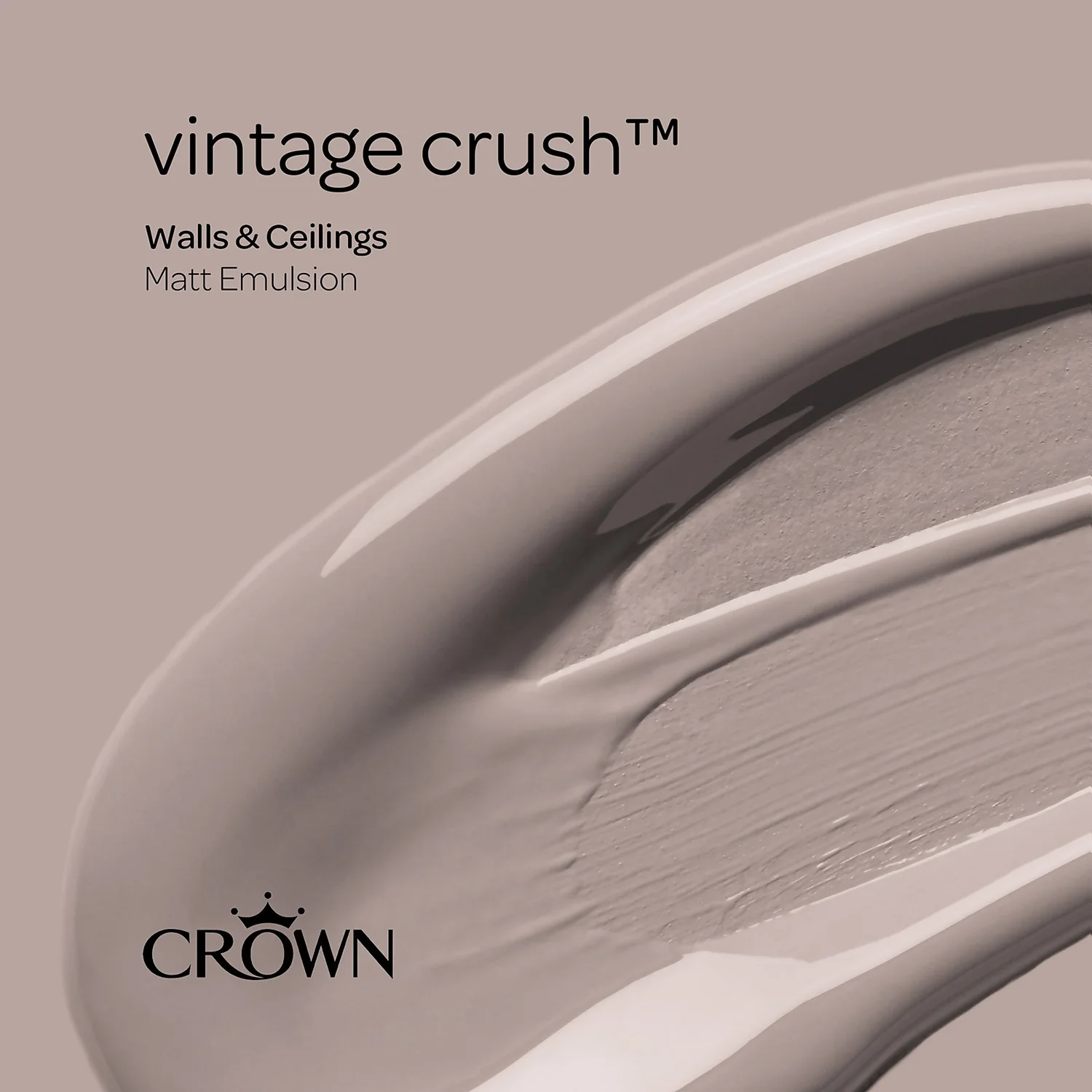 Vintage Crush – A stylish and Simplistic mid tone. One of 80 colours available in this size, Vintage Crush is a unique shade of neutral paint that provides a comforting feel to any room setting. Add a touch of warmth to any space, and to any room, with this beautiful neutral paint. “Stylish and simplistic, works well as a mid toned backdrop against paler furniture”- Crown Colour Specialist.