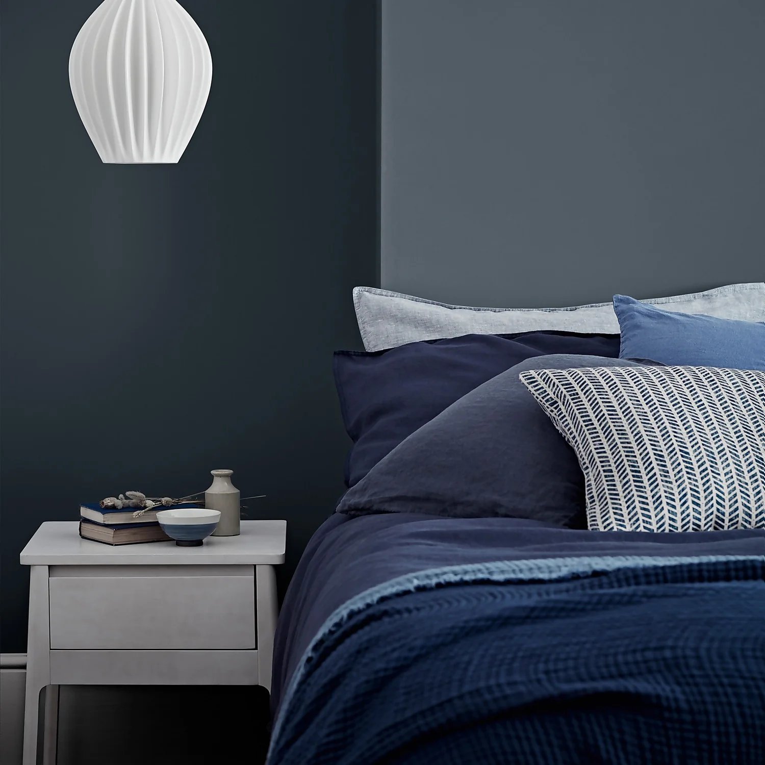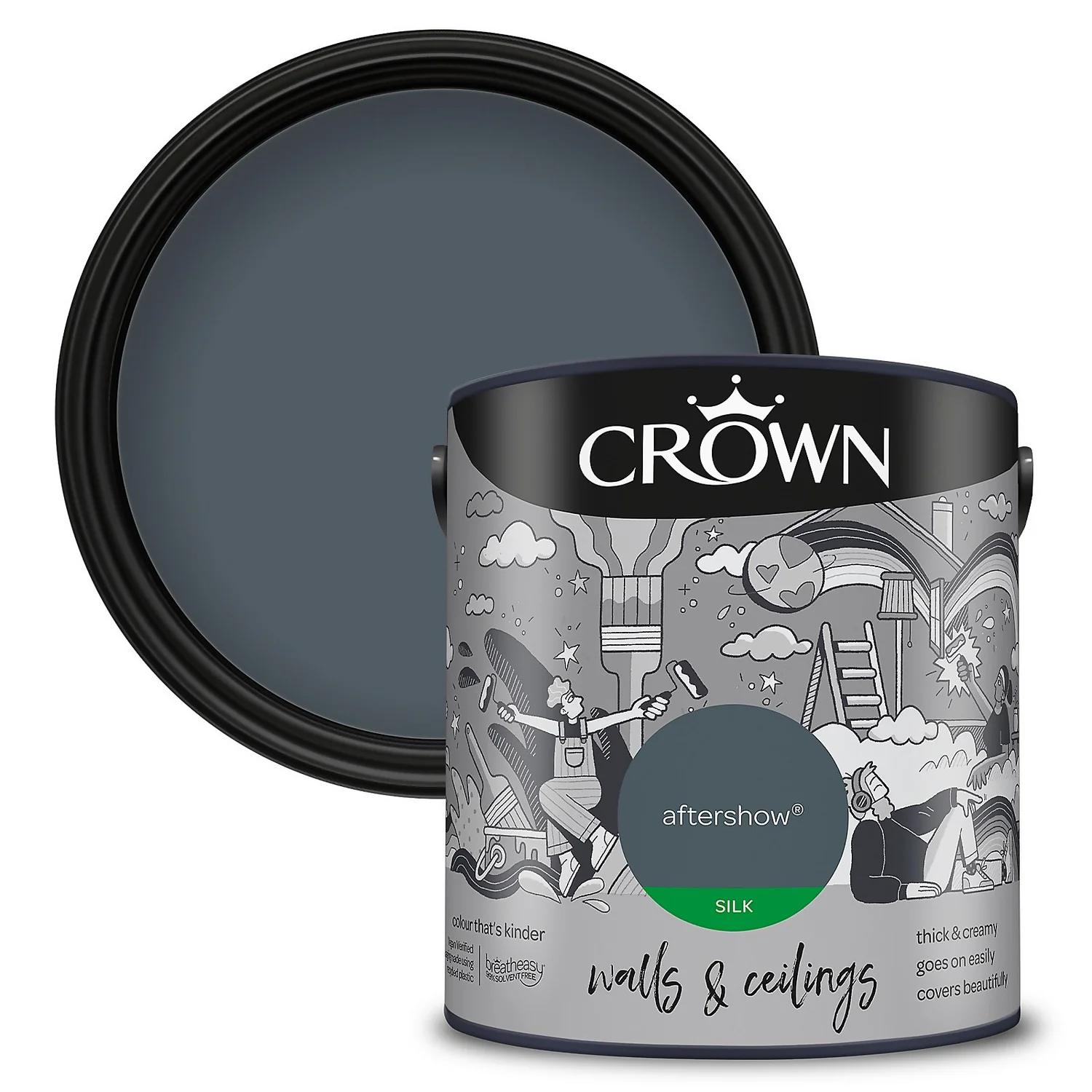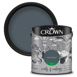 One of 32 colours available in this size, Aftershow is a unique shade of dark navy paint that provides a dominating presence to any room setting. Create depth to any space, and to any room, with this beautiful dark blue paint. “Rather than making a room feel small, using a shade like Aftershow blurs the boundaries and makes any space feel larger. With a predominant hue of deep navy blue, Aftershow is a true favourite within this collection”- Crown Colour Specialist.