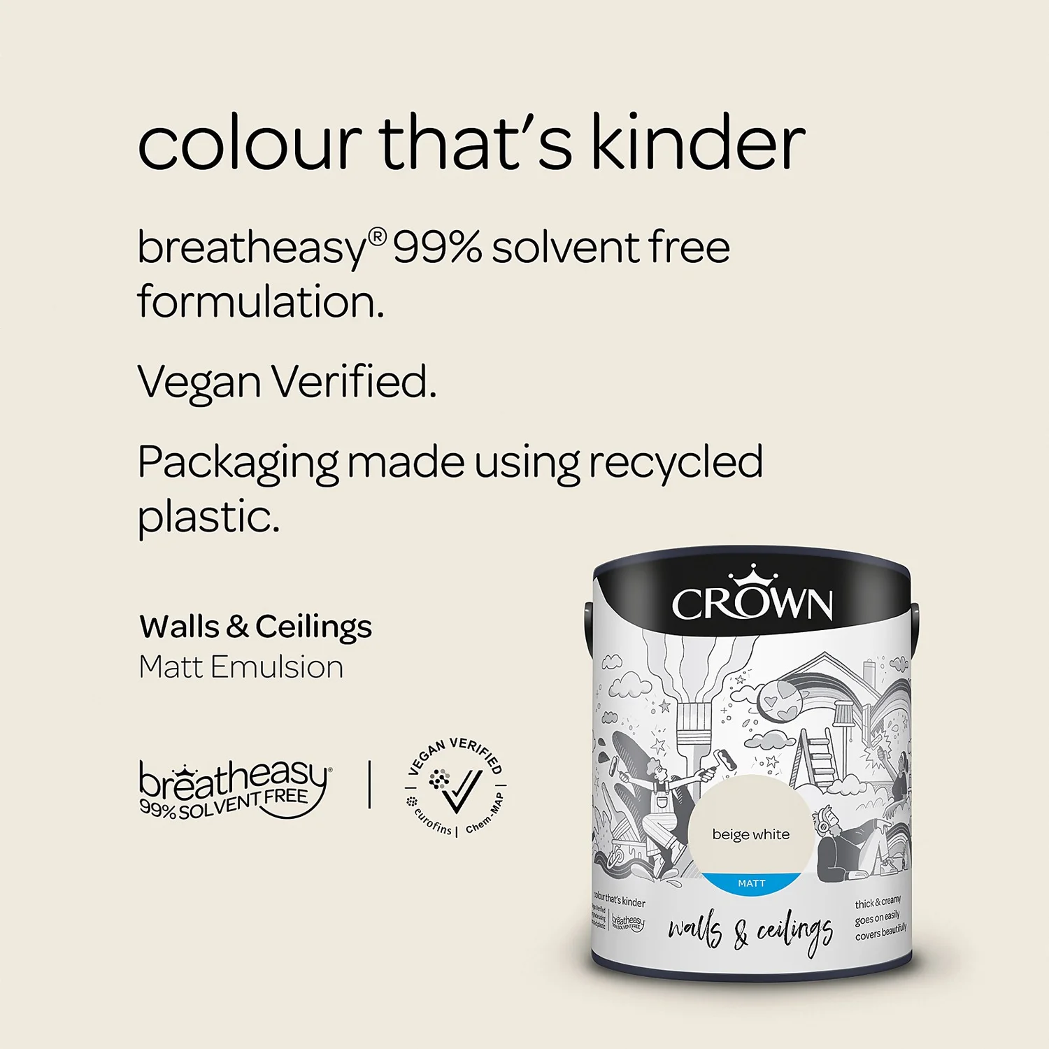 Introducing breatheasy -Crown’s Leading Formulation. Using carefully selected vegan verified ingredients, Crown’s unique breatheasy 99% solvent free formulation offers you the confidence to decorate your home safely. Limiting exposure to airborne triggers of asthma and allergy, it helps create a healthier space for your whole family. And we are pushing what’s possible even further with packaging made using recycled plastic. Our core wall & Ceiling matt coloured emulsion includes Crown’s leading breatheasyformulation, meaning it is not only 99% solvent free, but this product is certified as , making it the ideal choice of paint for your home. Using carefully selected vegan verified ingredients, Crown’s unique breatheasy 99% solvent free formulation offers you the confidence to decorate your home safely. Limiting exposure to airborne triggers of asthma and allergy, it helps create a healthier space for your whole family. And we are pushing what’s possible even further with packaging made using recycled plastic.