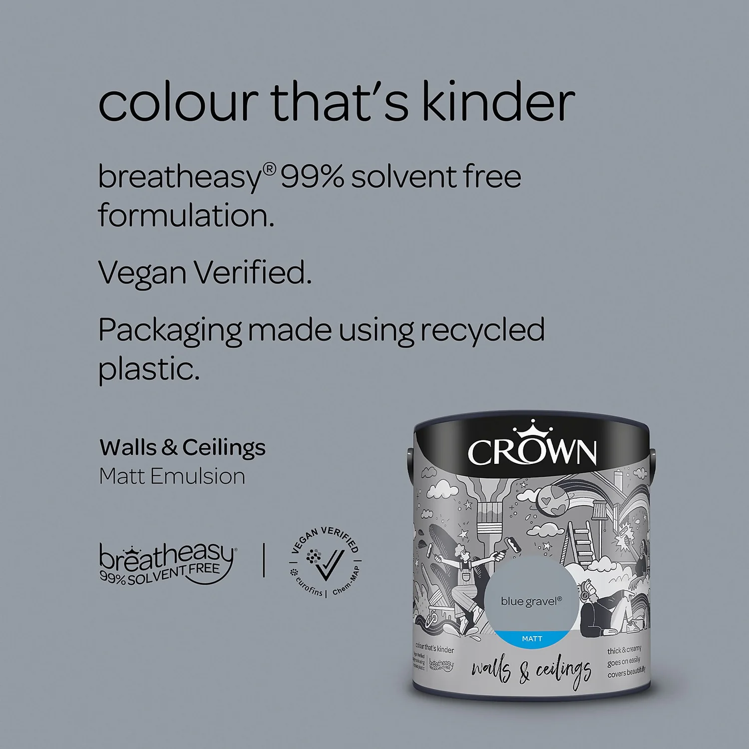 Introducing breatheasy -Crown’s Leading Formulation. Using carefully selected vegan verified ingredients, Crown’s unique breatheasy 99% solvent free formulation offers you the confidence to decorate your home safely. Limiting exposure to airborne triggers of asthma and allergy, it helps create a healthier space for your whole family. And we are pushing what’s possible even further with packaging made using recycled plastic.
