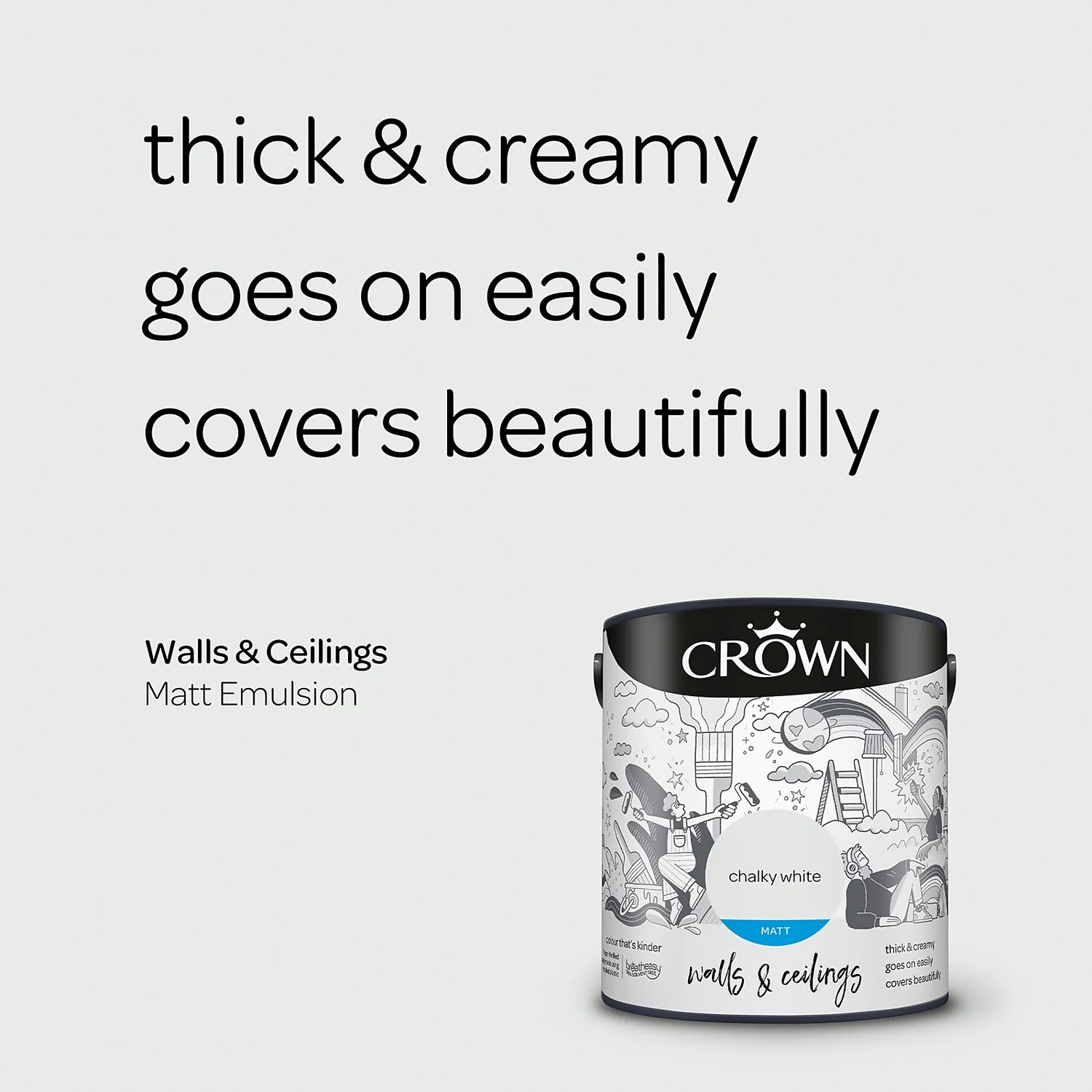 Introducing breatheasy -Crown’s Leading Formulation. Using carefully selected vegan verified ingredients, Crown’s unique breatheasy 99% solvent free formulation offers you the confidence to decorate your home safely. Limiting exposure to airborne triggers of asthma and allergy, it helps create a healthier space for your whole family. And we are pushing what’s possible even further with packaging made using recycled plastic.