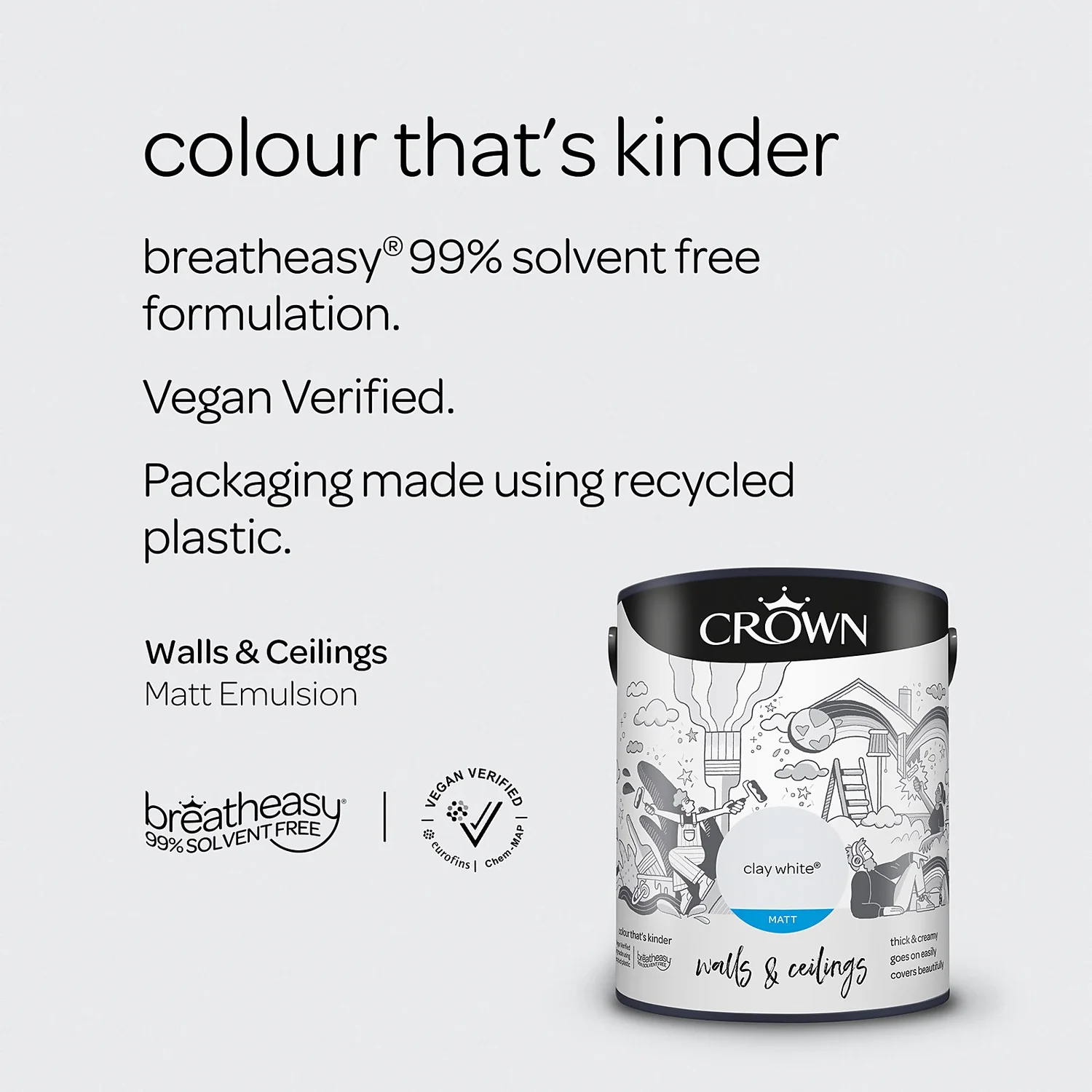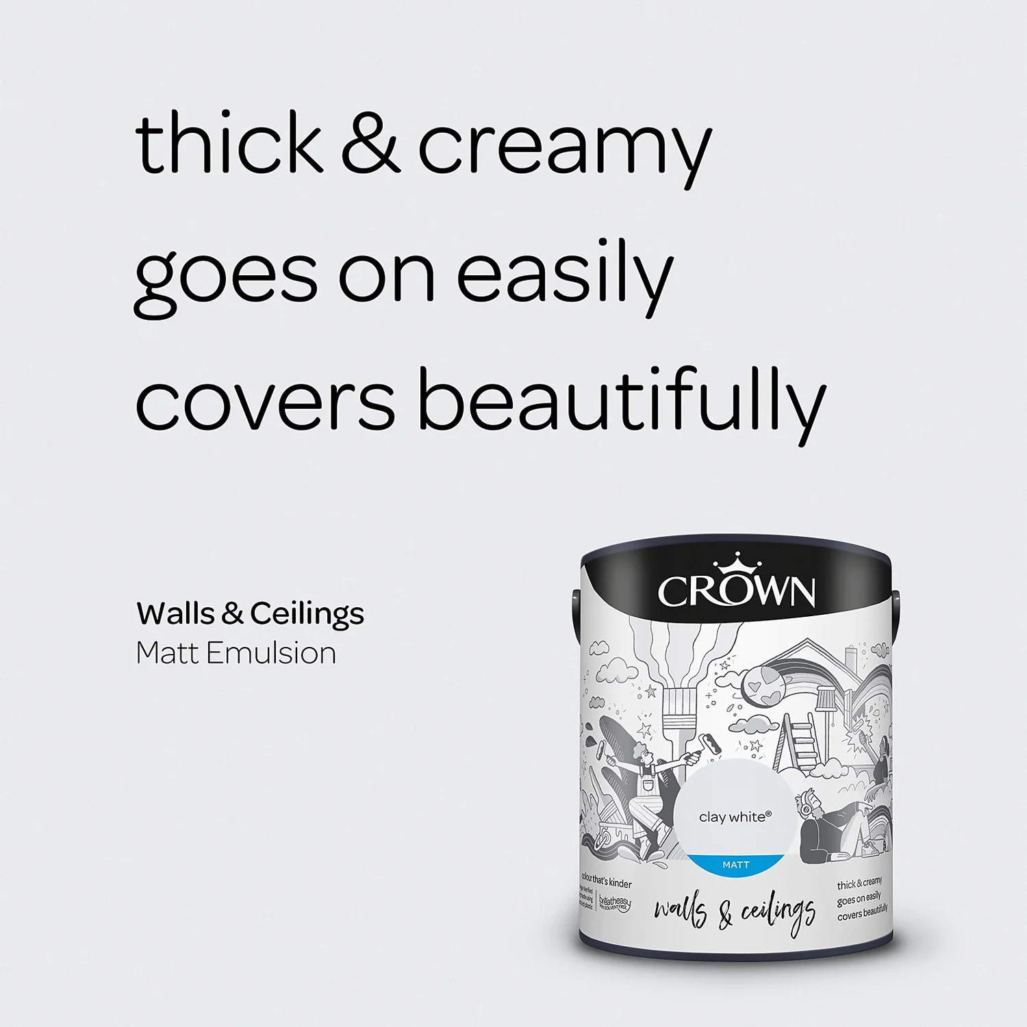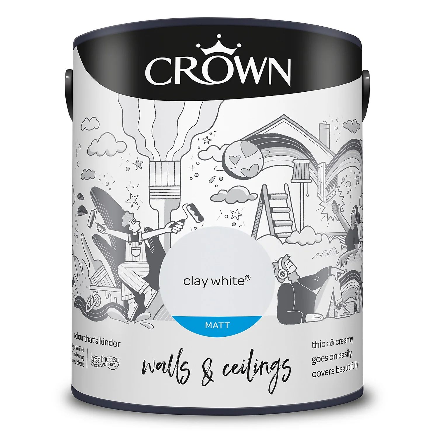 Clay White – A Cool Off-White Paint for a Minimal Look. One of 40 colours available in this size, Clay White is a unique shade of off-white paint that provides a cool finish to any room setting. Create a clean, minimal look to any space, and to any room, with this beautiful off-white paint. A cool white shade. A good staple colour that is especially great for creating a chiaroscuro effect on architectural details or wood panelling.- Crown Colour Specialist.