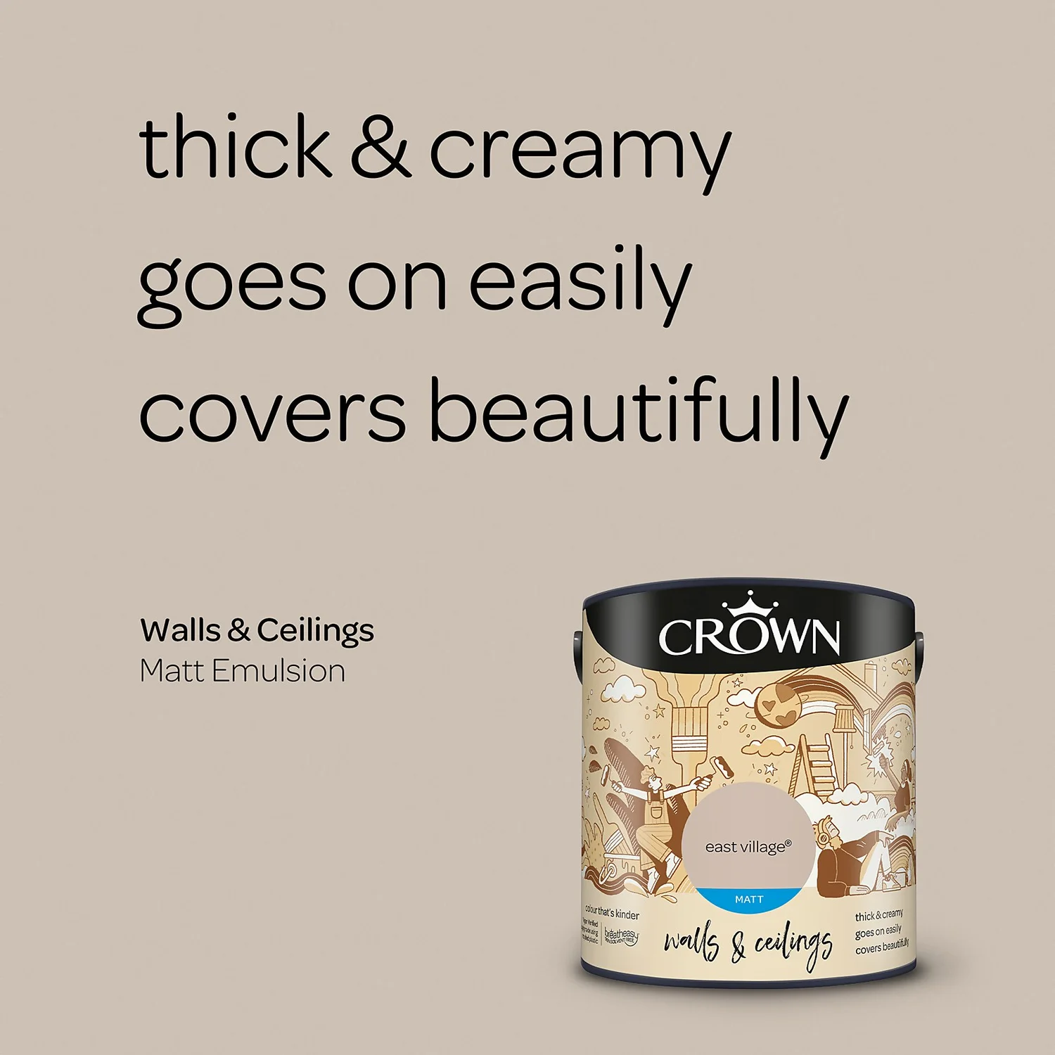 East Village – A Perfect Neutrals Paint for Backdrops. One of 80 colours available in this size, East Village is a unique shade of Neutrals paint that provides the perfect backdrop to any room setting. Create any space, and any room to how you want, with this beautiful Neutrals paint. A perfect Neutrals shade. Works well as a backdrop colour to showcase furniture and furnishings. Try with shades of white or alternatively, pair with Crown’s commanding colour, Rebel for the ultimate effect. – Crown Colour Specialist.