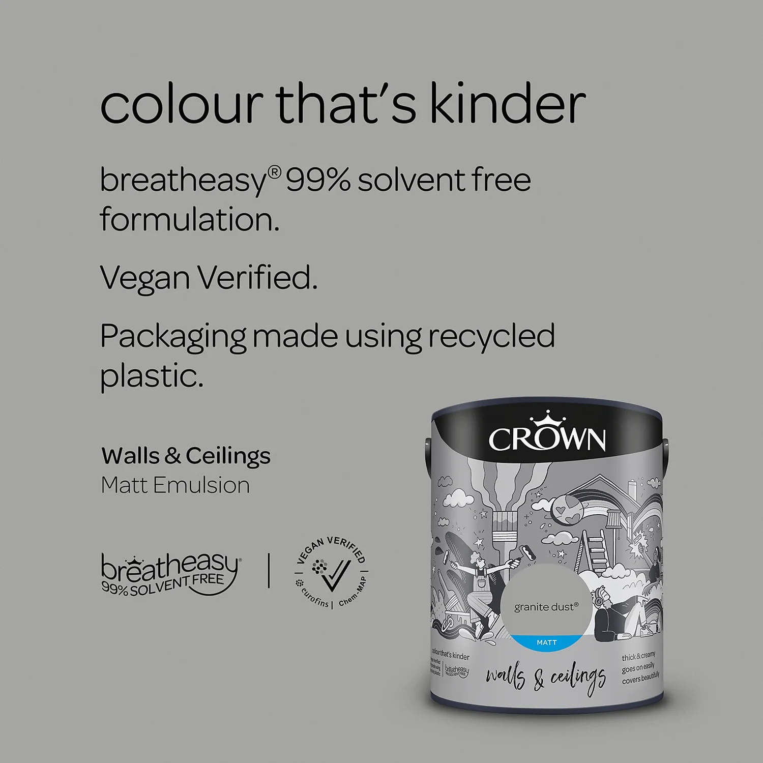 Introducing breatheasy -Crown’s Leading Formulation. Using carefully selected vegan verified ingredients, Crown’s unique breatheasy 99% solvent free formulation offers you the confidence to decorate your home safely. Limiting exposure to airborne triggers of asthma and allergy, it helps create a healthier space for your whole family. And we are pushing what’s possible even further with packaging made using recycled plastic.