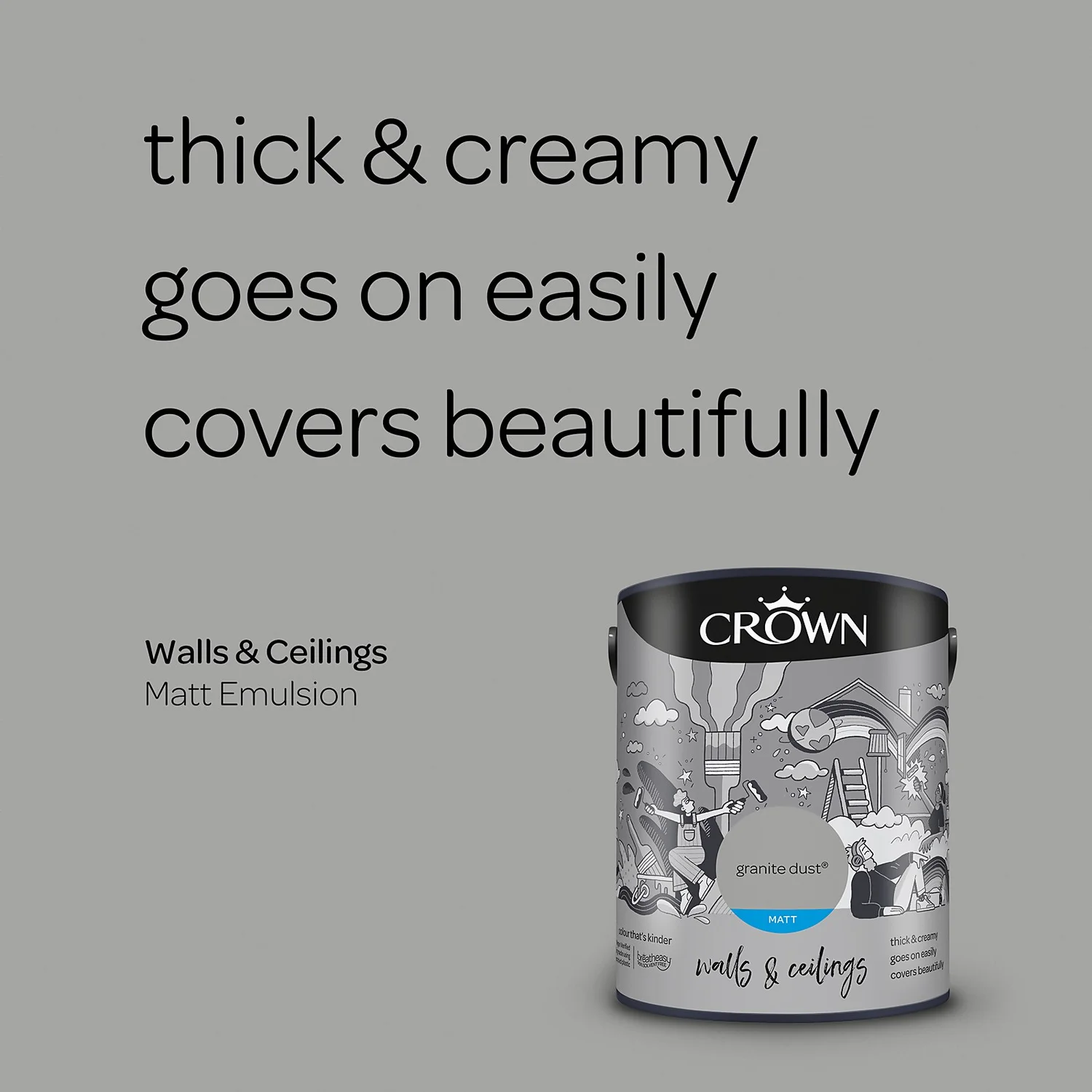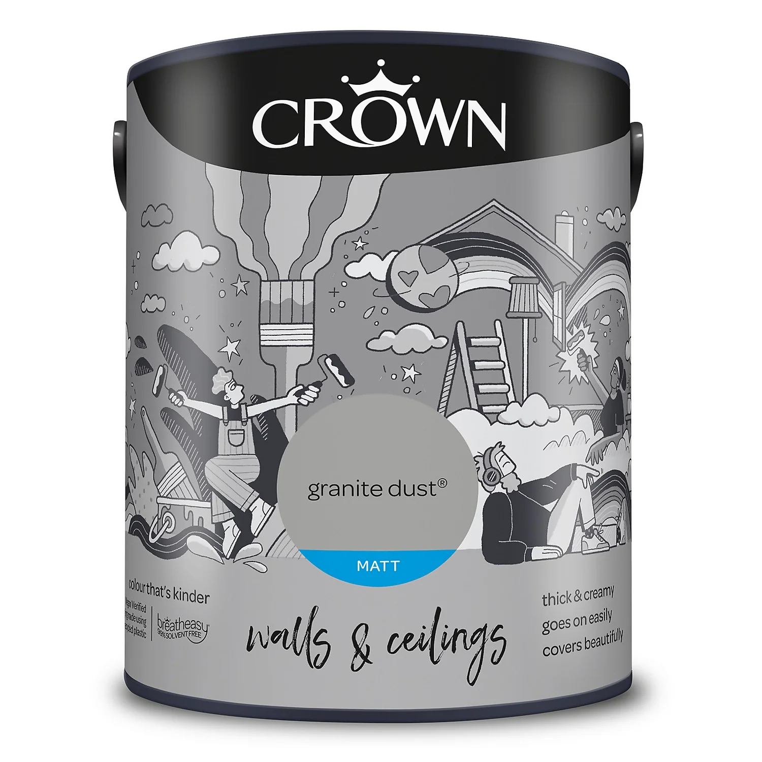 Granite Dust – A Mid Grey Paint that’s Ideal for Light Spaces. One of 40 colours available in this size, Granite Dust is a unique shade of mid grey paint that provides an industrial feel to any room setting. Add a touch of urban city to any space, and to any room, with this beautiful mid grey paint. An industrial mid-toned grey which works well in light spaces. – Crown Colour Specialist.