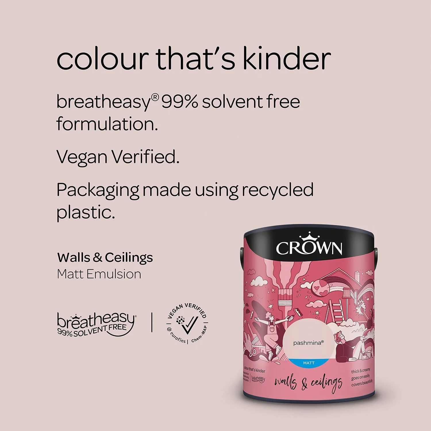 Introducing breatheasy -Crown’s Leading Formulation. Using carefully selected vegan verified ingredients, Crown’s unique breatheasy 99% solvent free formulation offers you the confidence to decorate your home safely. Limiting exposure to airborne triggers of asthma and allergy, it helps create a healthier space for your whole family. And we are pushing what’s possible even further with packaging made using recycled plastic.
