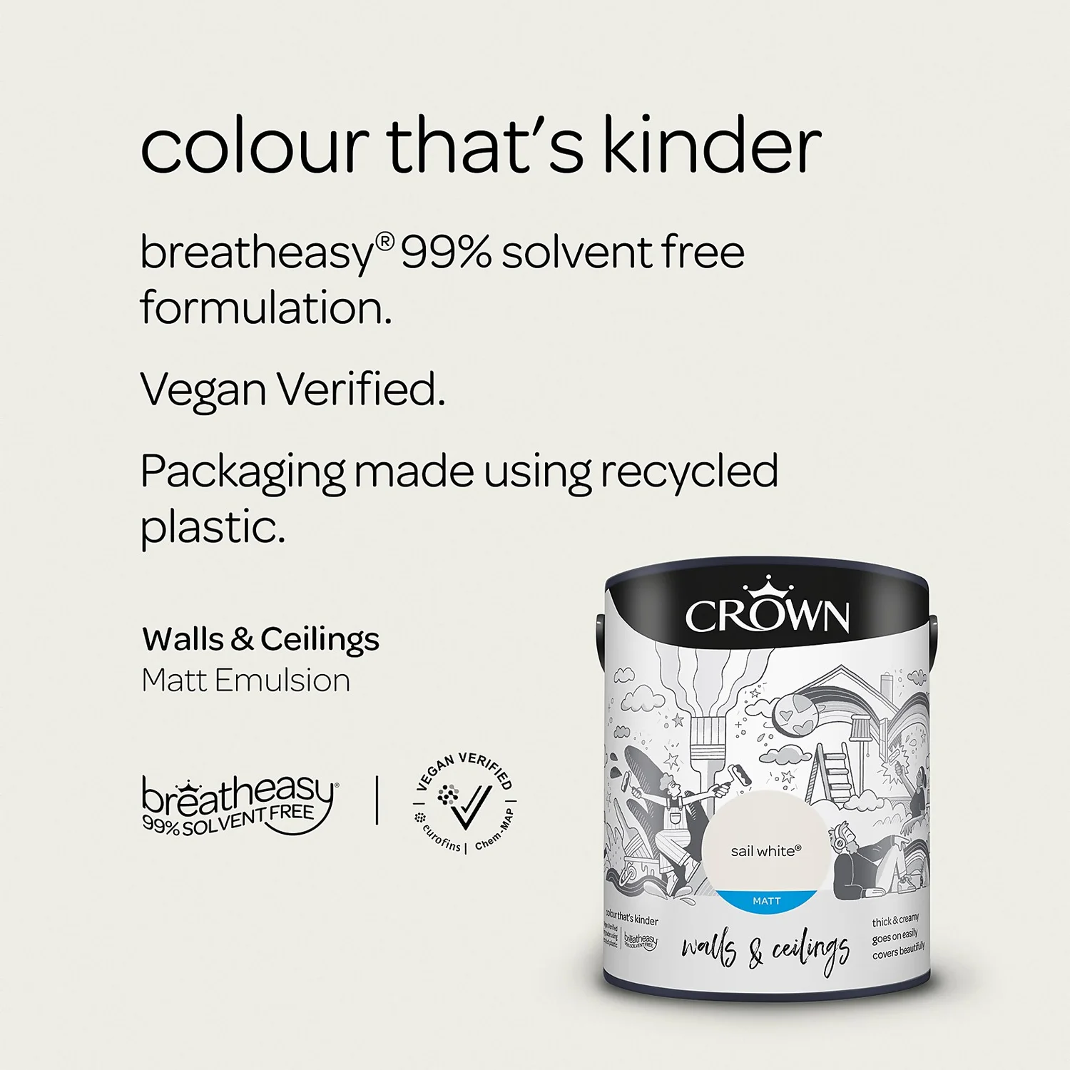 Introducing breatheasy -Crown’s Leading Formulation. Using carefully selected vegan verified ingredients, Crown’s unique breatheasy 99% solvent free formulation offers you the confidence to decorate your home safely. Limiting exposure to airborne triggers of asthma and allergy, it helps create a healthier space for your whole family. And we are pushing what’s possible even further with packaging made using recycled plastic.