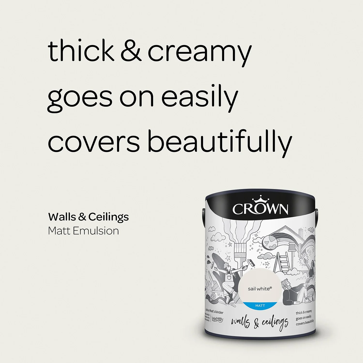 Sail White – A Traditional Off-White Paint. One of 40 colours available in this size, Sail White is a unique shade of off-white paint that provides a lovely, soft finish to any room setting. Create an inviting, traditional look to any space, and to any room, with this beautiful off-white paint. “Another great alternative to Pure Brilliant White. Perfect for more traditional properties where pure white would be out of keeping. – Crown Colour Specialist.