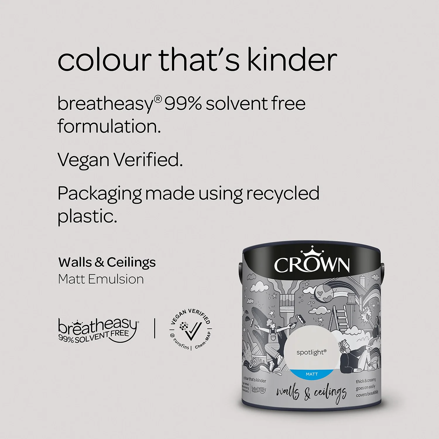 Introducing breatheasy -Crown’s Leading Formulation. Using carefully selected vegan verified ingredients, Crown’s unique breatheasy 99% solvent free formulation offers you the confidence to decorate your home safely. Limiting exposure to airborne triggers of asthma and allergy, it helps create a healthier space for your whole family. And we are pushing what’s possible even further with packaging made using recycled plastic.