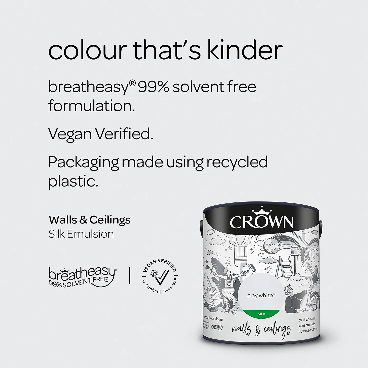 Clay White – A Cool Off-White Paint for a Minimal Look. One of 32 colours available in this size, Clay White is a unique shade of off-white paint that provides a cool finish to any room setting. Create a clean, minimal look to any space, and to any room, with this beautiful off-white paint. A cool white shade. A good staple colour that is especially great for creating a chiaroscuro effect on architectural details or wood panelling.- Crown Colour Specialist.