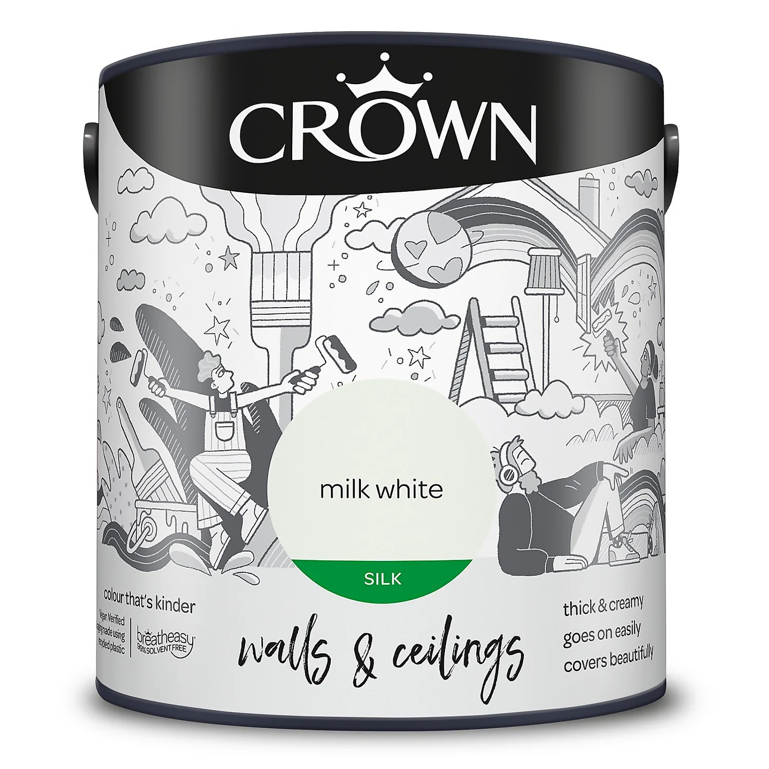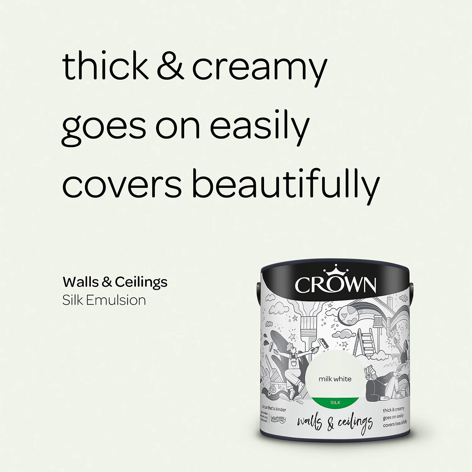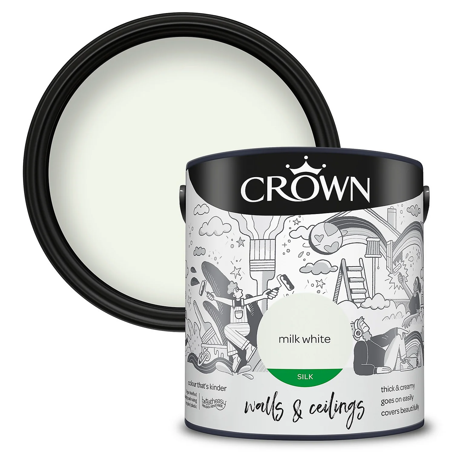 Milk White – A Cool Off-White Paint with a Hint of Greens. One of 32 colours available in this size, Milk White is a unique shade of off-white paint that provides a fresh finish to any room setting. Create a clean, modern look to any space, and to any room, with this beautiful off-white paint. A great alternative to white but don’t be fooled by the name. This colour has a hint of Greens which will be accentuated further if applied in the ceilings. – Crown Colour Specialist.