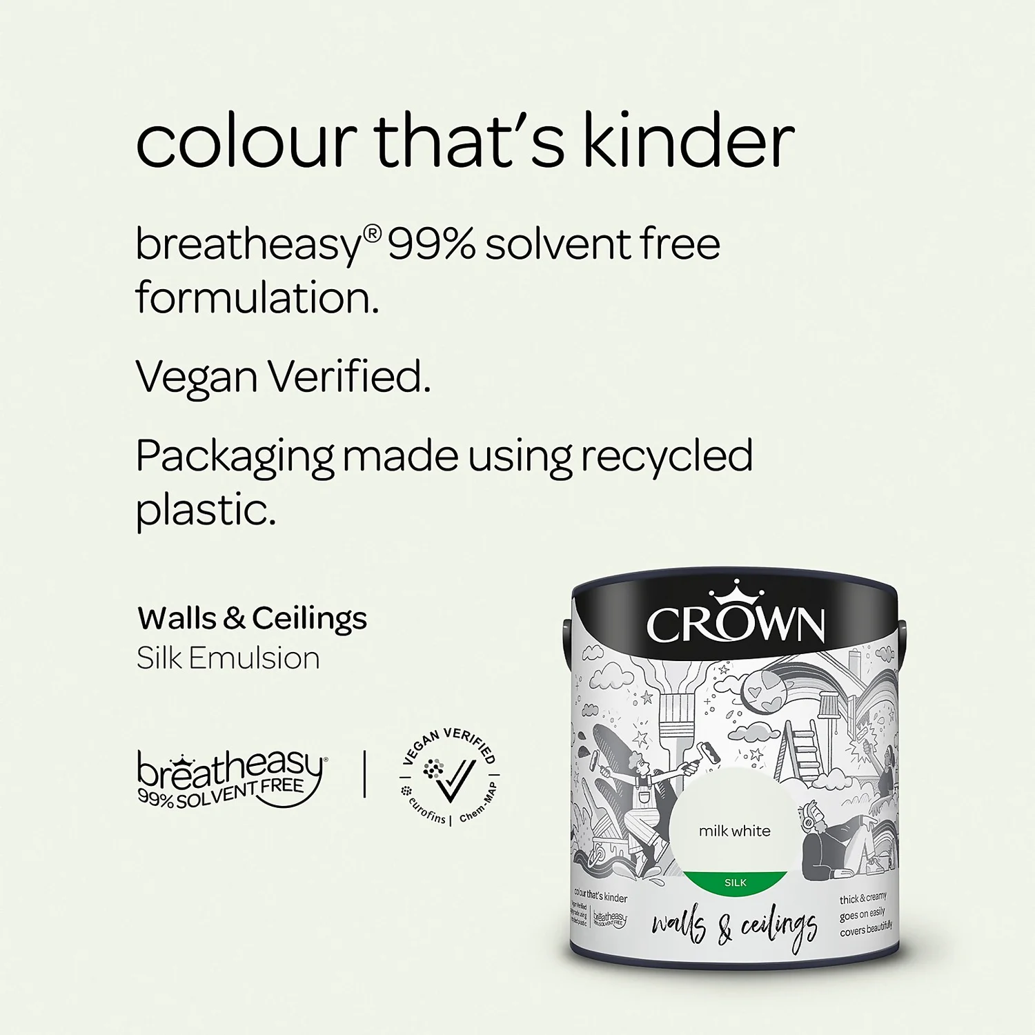 Introducing breatheasy -Crown’s Leading Formulation. Using carefully selected vegan verified ingredients, Crown’s unique breatheasy 99% solvent free formulation offers you the confidence to decorate your home safely. Limiting exposure to airborne triggers of asthma and allergy, it helps create a healthier space for your whole family. And we are pushing what’s possible even further with packaging made using recycled plastic.