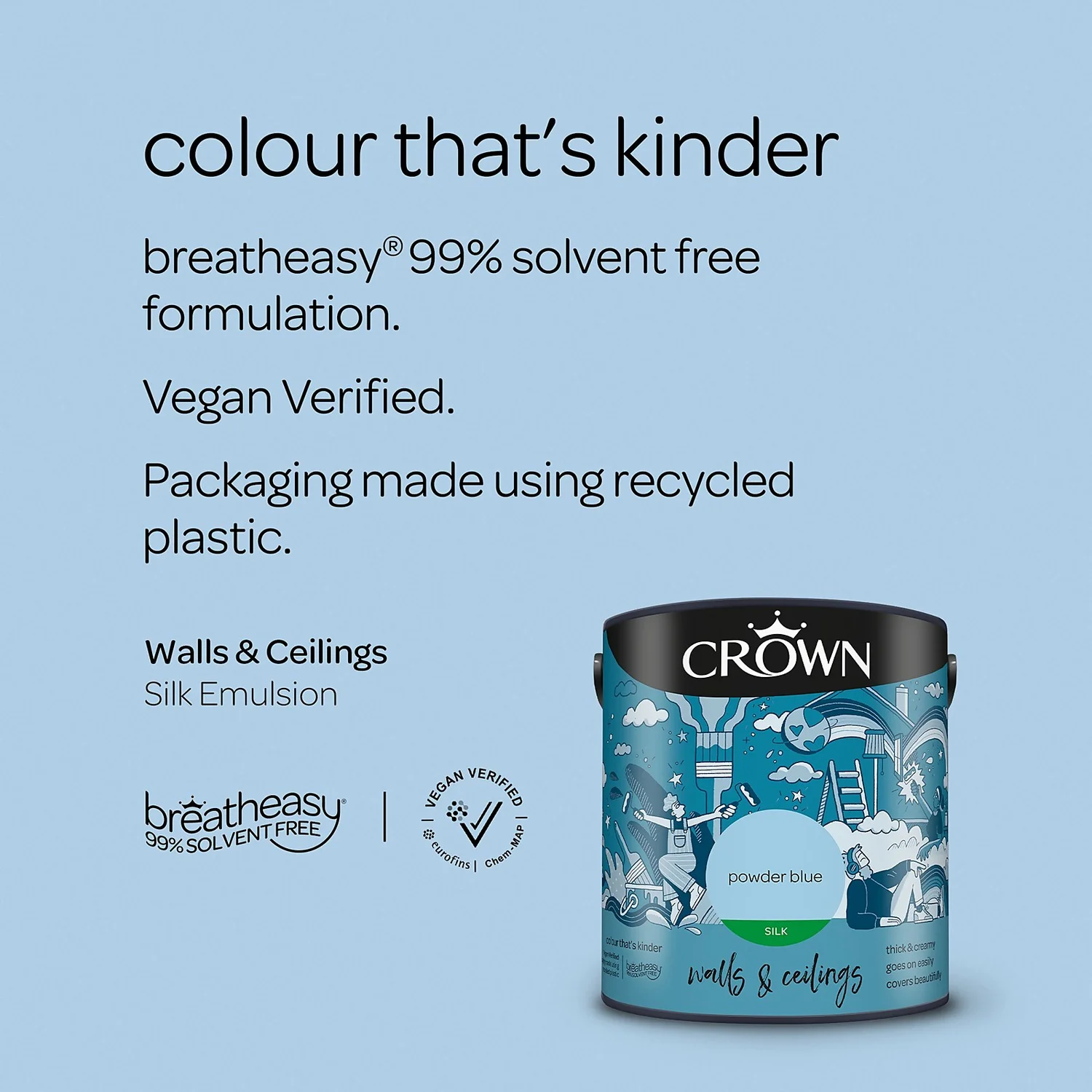 Introducing breatheasy -Crown’s Leading Formulation. Using carefully selected vegan verified ingredients, Crown’s unique breatheasy 99% solvent free formulation offers you the confidence to decorate your home safely. Limiting exposure to airborne triggers of asthma and allergy, it helps create a healthier space for your whole family. And we are pushing what’s possible even further with packaging made using recycled plastic.