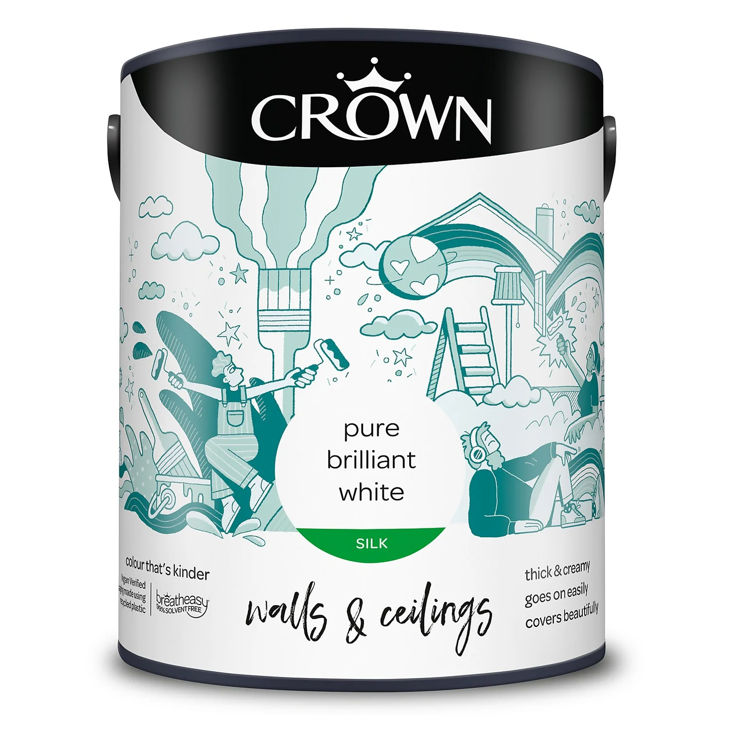Pure Brilliant White – A True White Paint. One of 9 colours available in this size, Pure Brilliant White is a unique shade of true white paint that provides a clean and sharp look in any room setting. Create a clean, modern look to any space, and to any room, with this beautiful white paint. – Crown Colour Specialist.